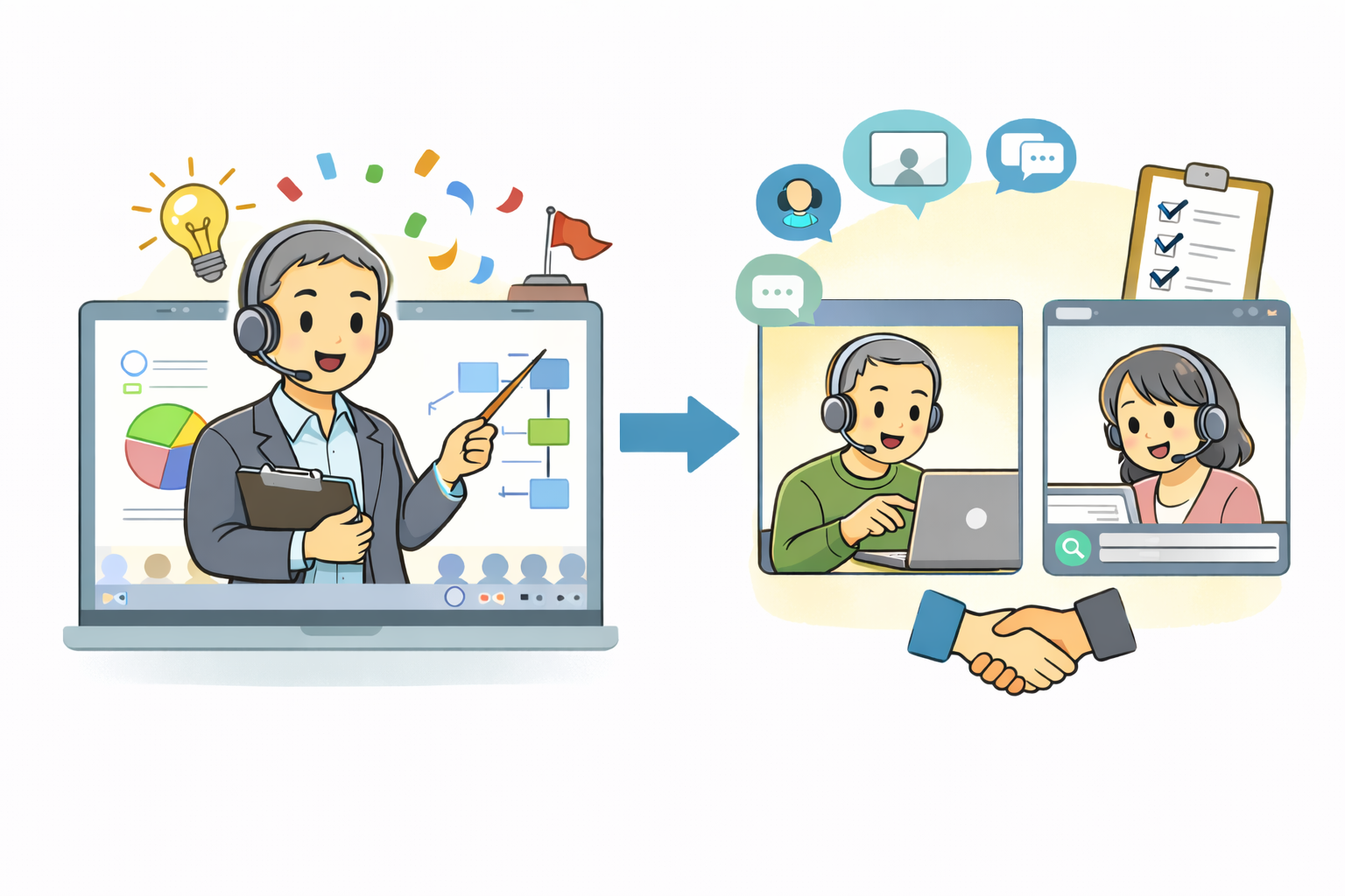「型」で再現する実践テンプレート講座。疑問はその都度解消。徹底サポートで講師デビューを応援!